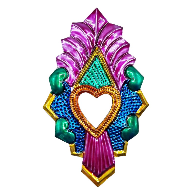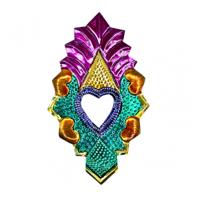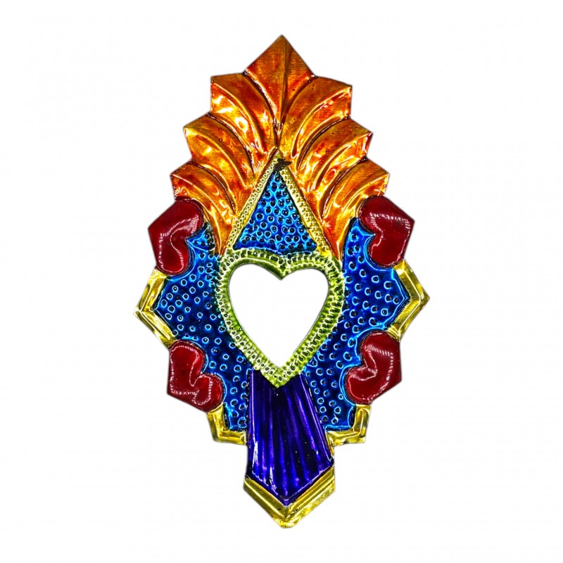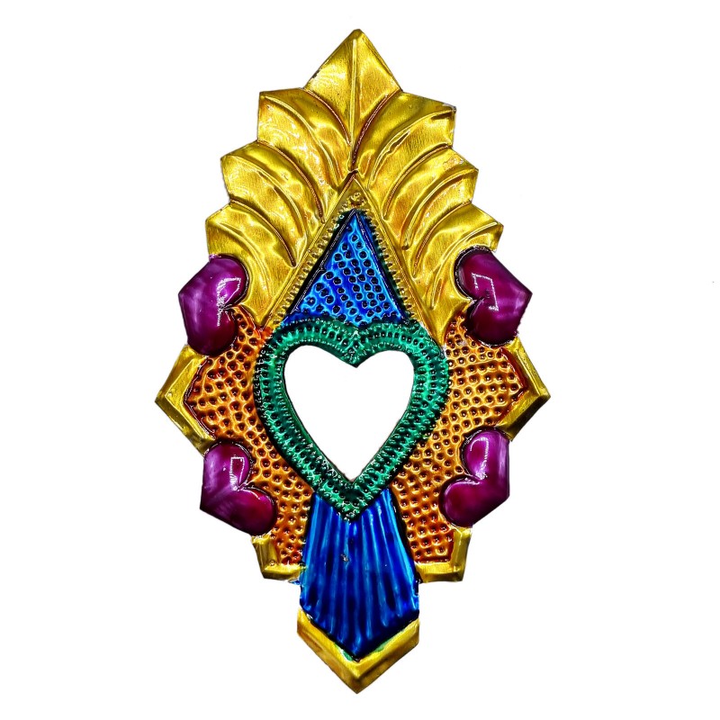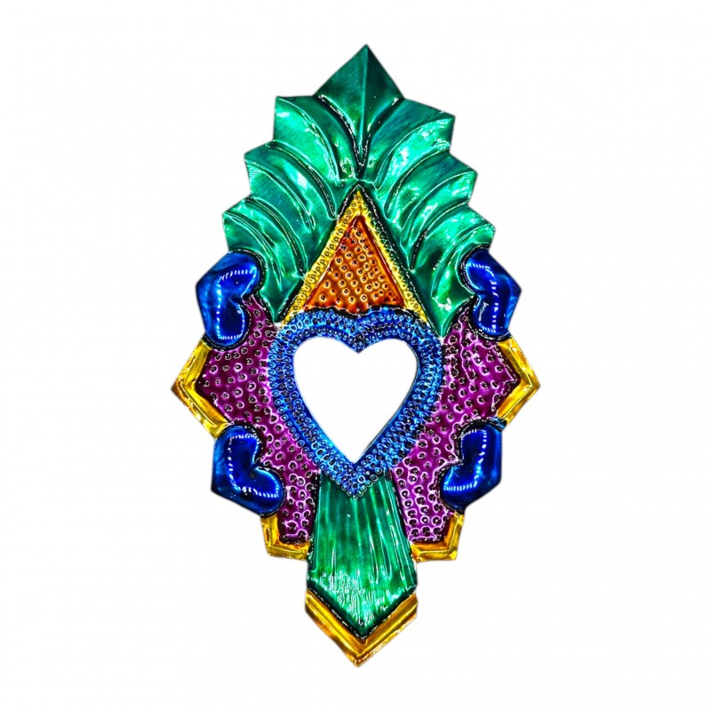 Coeur sacré avec un miroir, orné de petits coeurs et peint dans les couleurs traditionnelles.