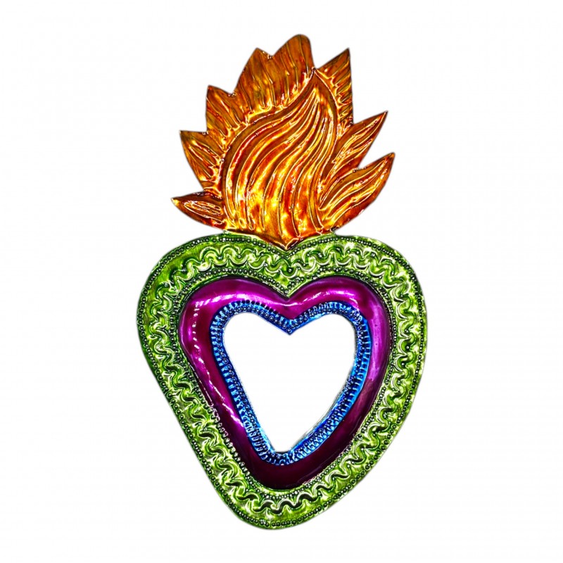 Coeur sacré à miroir Grande flamme