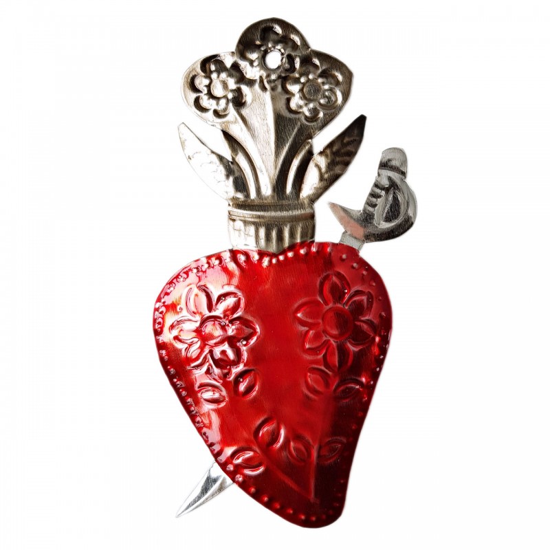 Votivherz aus Metall, durchbohrt mit einem Schwert.