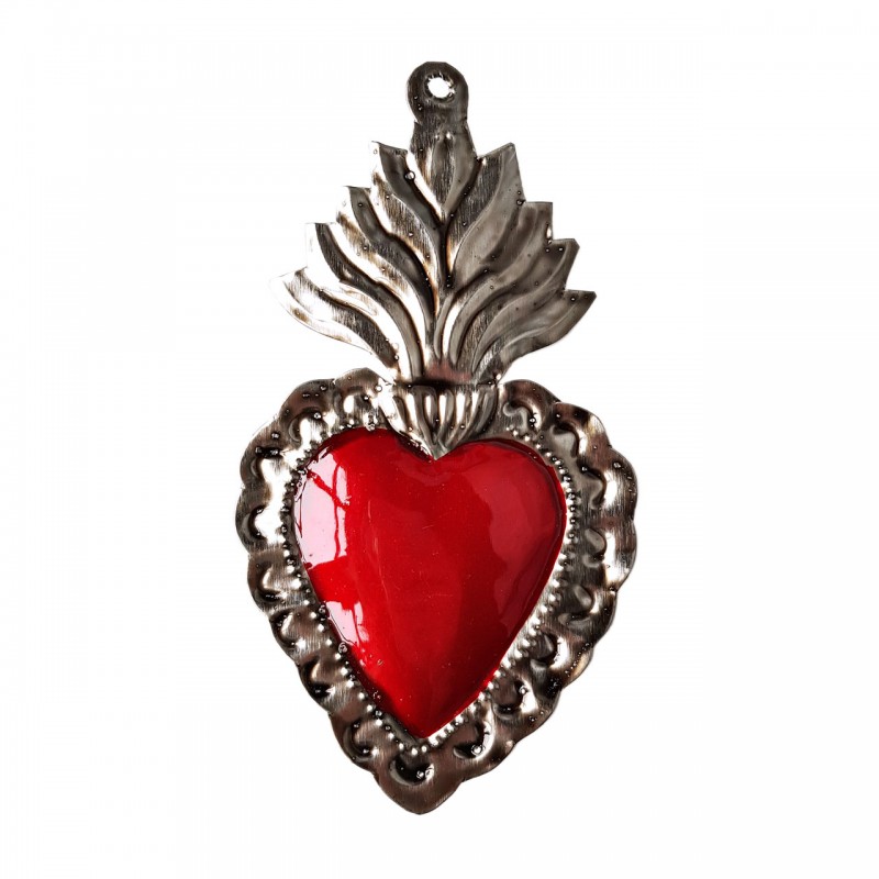 Coeur sacré mexicain surmonté d'une jolie flamme verte.