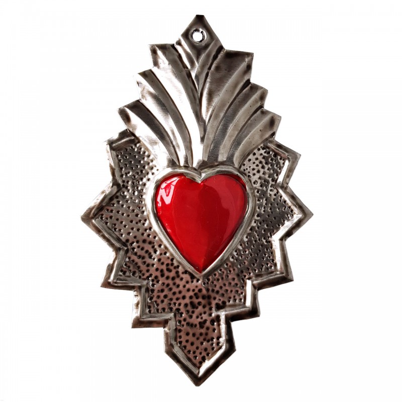 Coeur sacré mexicain surmonté d'une jolie flamme verte.