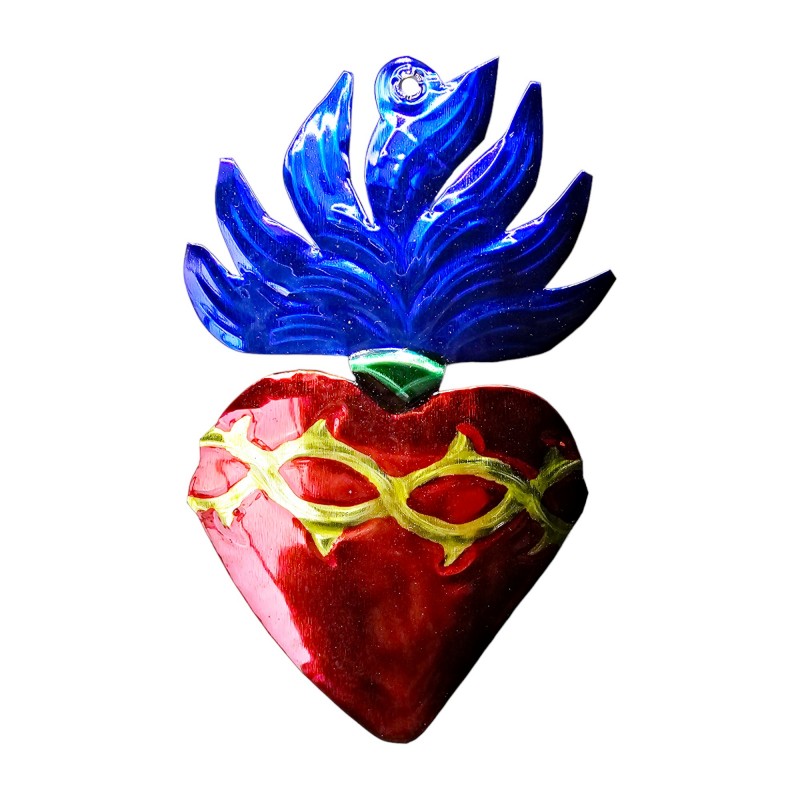 Petit coeur sacré mexicain encerclé d'une couronne d'épines.