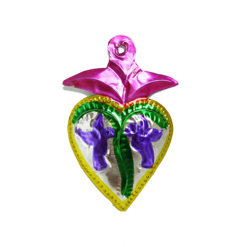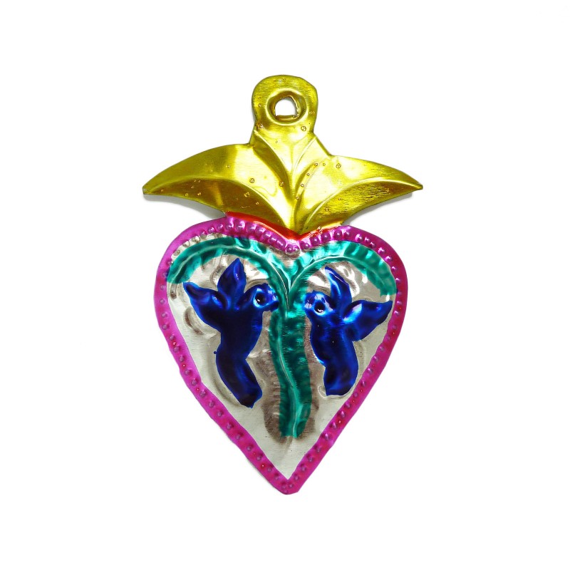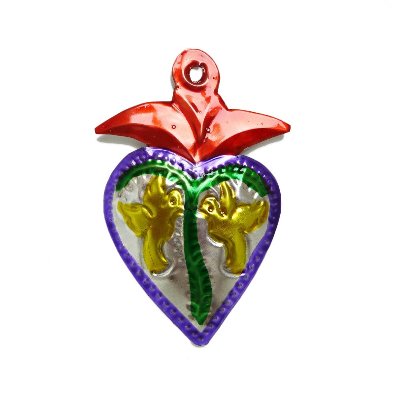 Petit coeur sacré mexicain avec deux colombes.