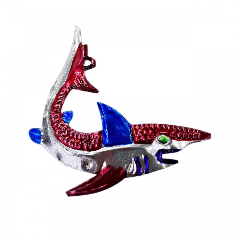 Décoration en métal en forme de perroquet, peinte sur les deux faces.