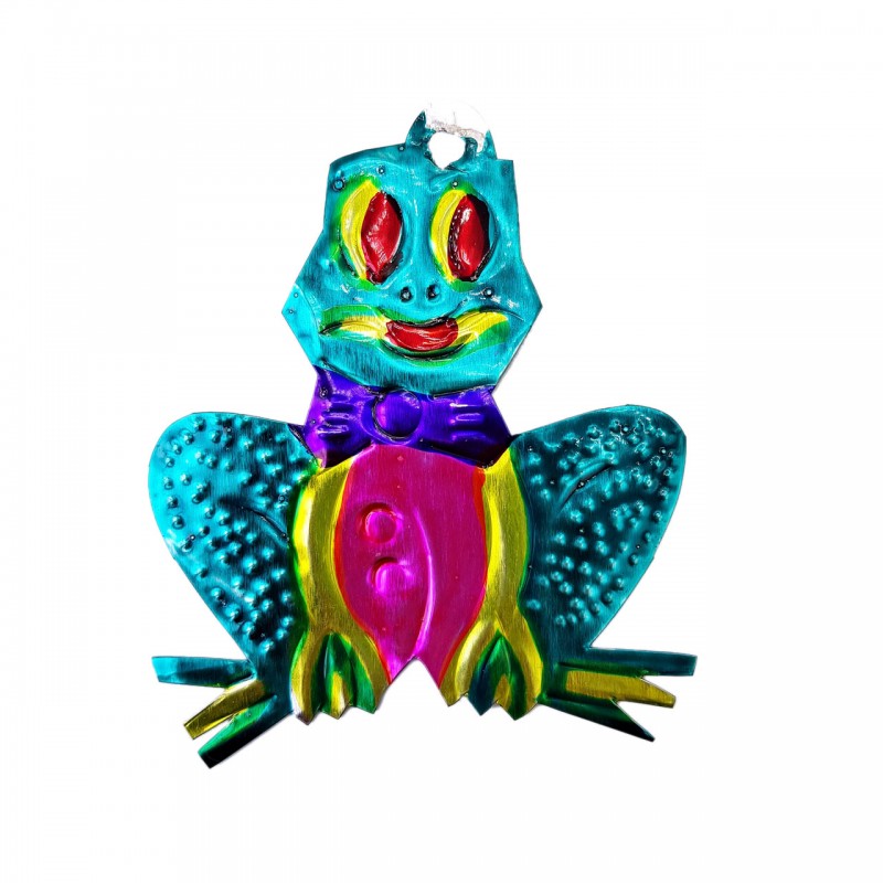 Décoration en métal en forme de perroquet, peinte sur les deux faces.