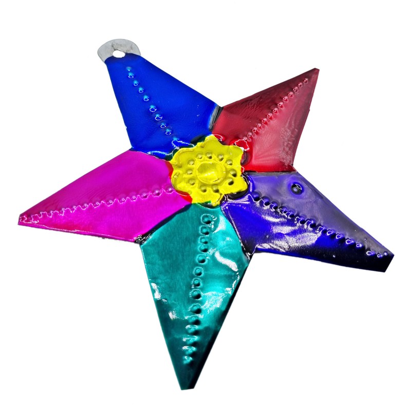 Décoration en métal en forme de perroquet, peinte sur les deux faces.