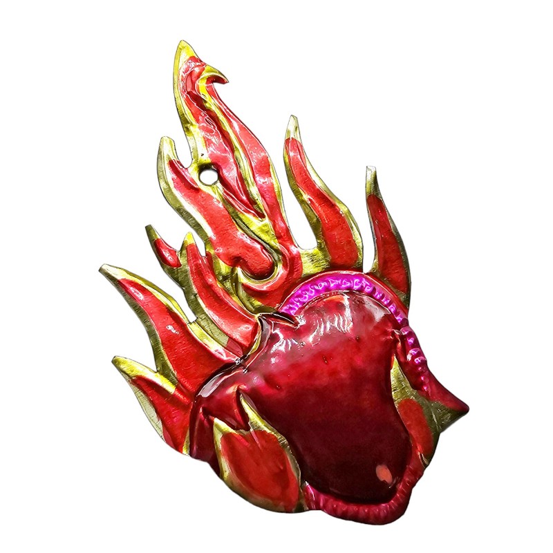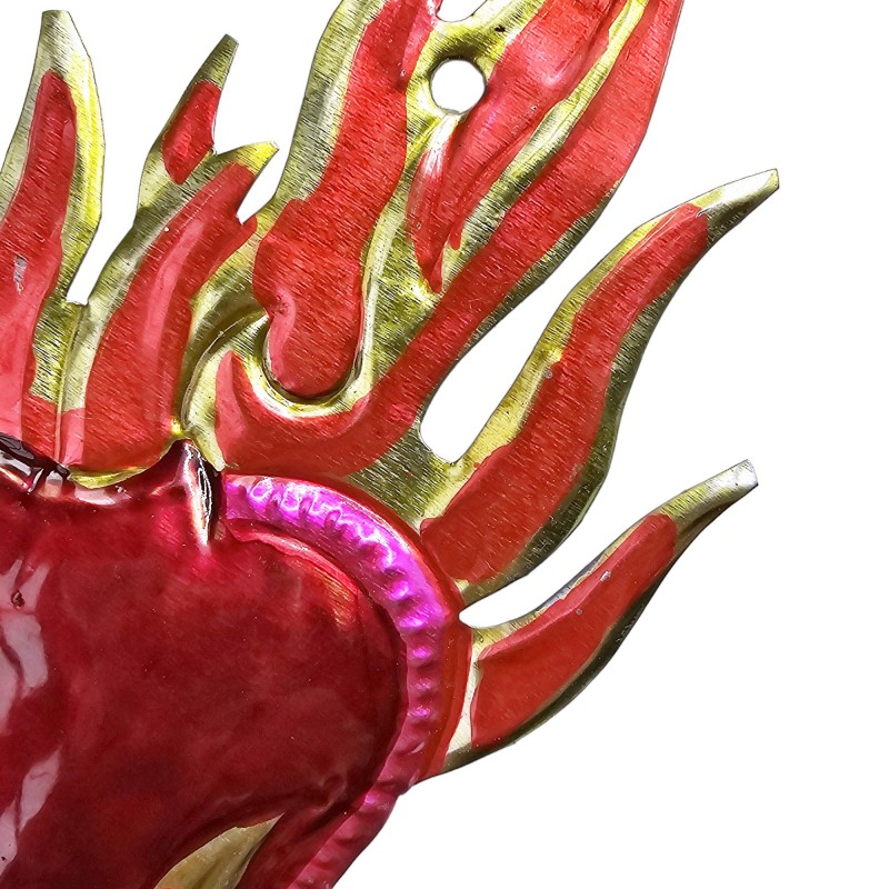 Ex-voto de coeur enflammé symbolisant l'amour passionné.