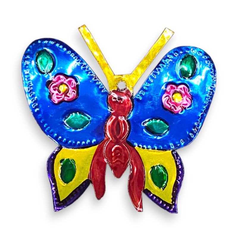 Décoration en métal en forme de perroquet, peinte sur les deux faces.