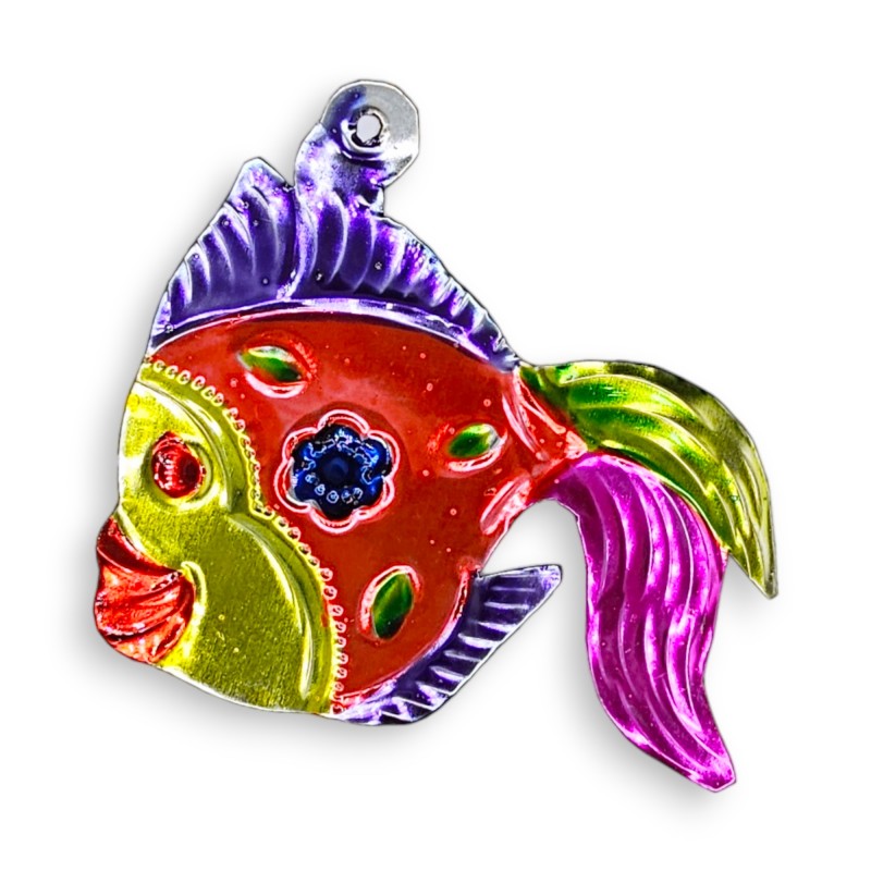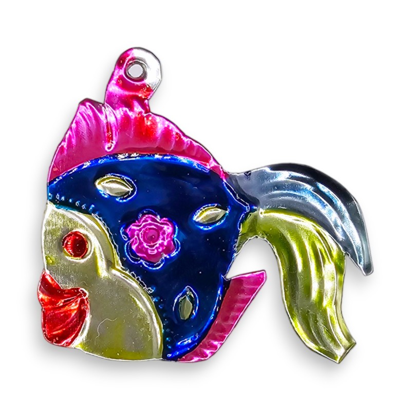 Décoration en métal en forme de perroquet, peinte sur les deux faces.