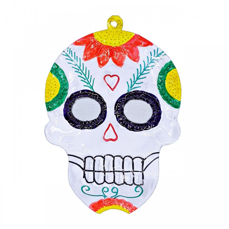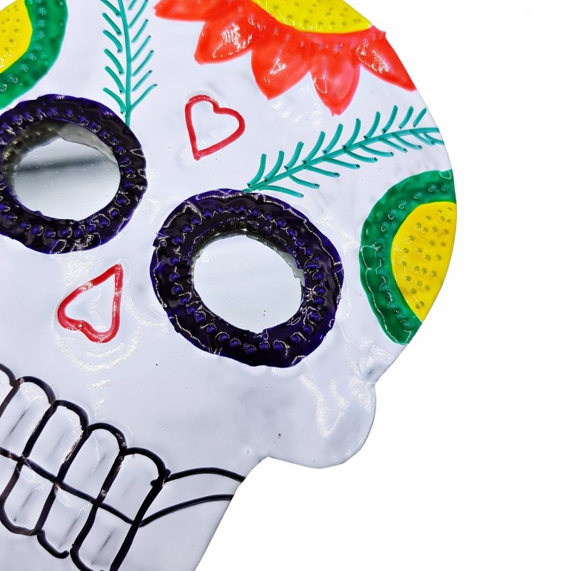 Décoration en forme de tête de mort mexicaine, avec miroir.