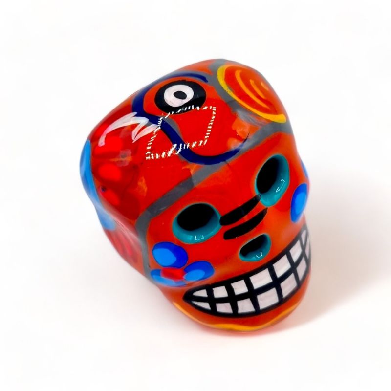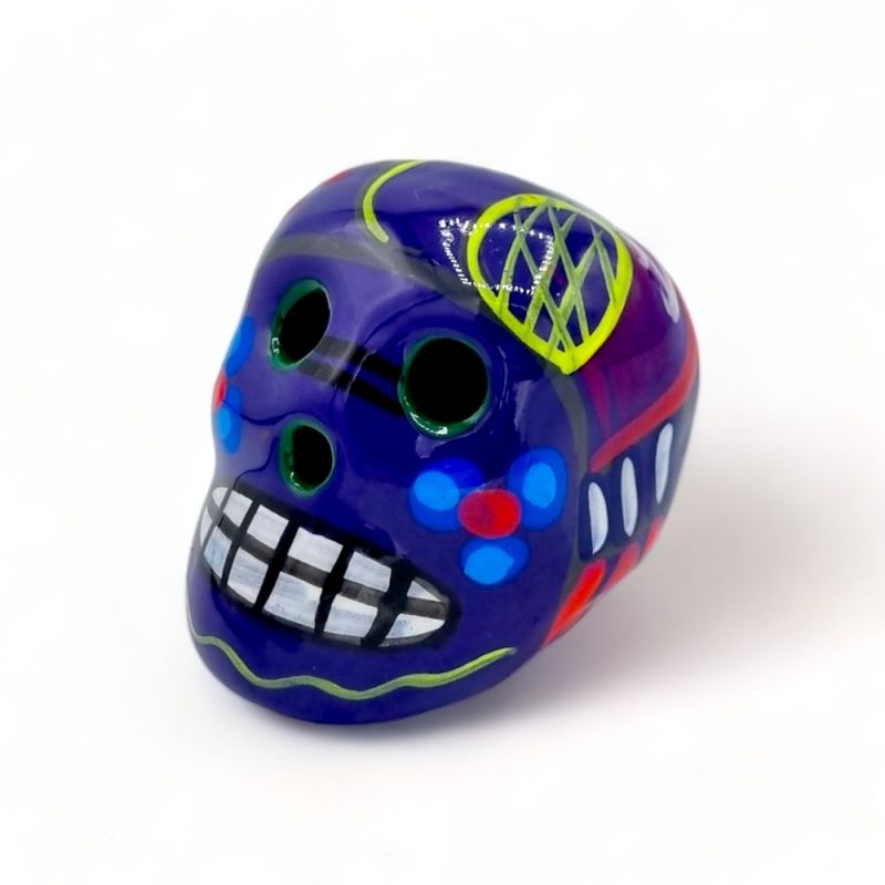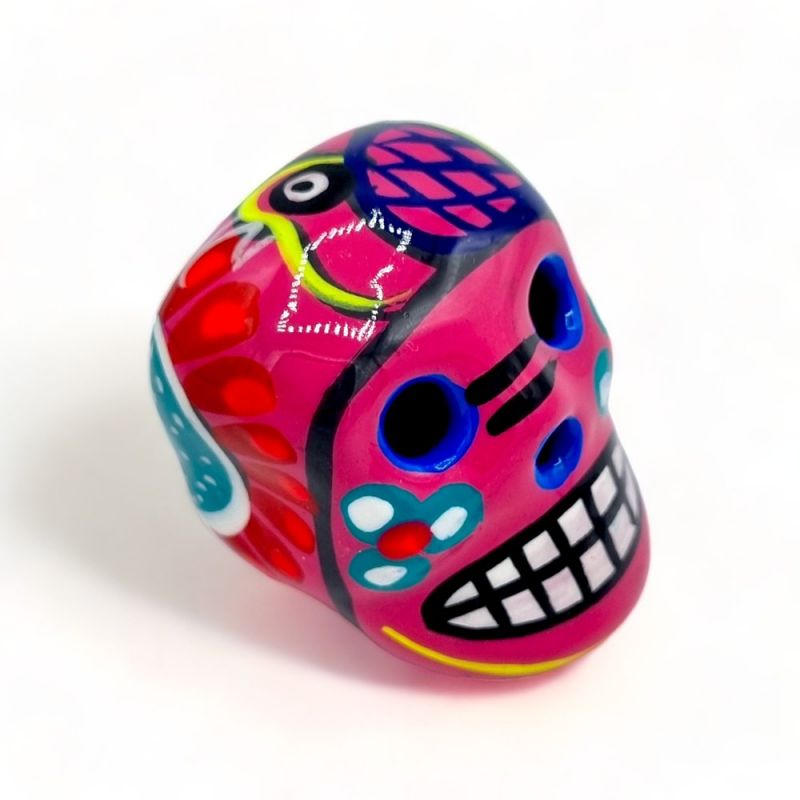 Jeder Magnet ist das Ergebnis der Arbeit einer kleinen Handwerkerfamilie in Mexiko. Der Totenkopf wird aus Ton modelliert, gebrannt und dann sorgfältig bemalt, bevor er für ein glänzendes und schützendes Finish glasiert wird.