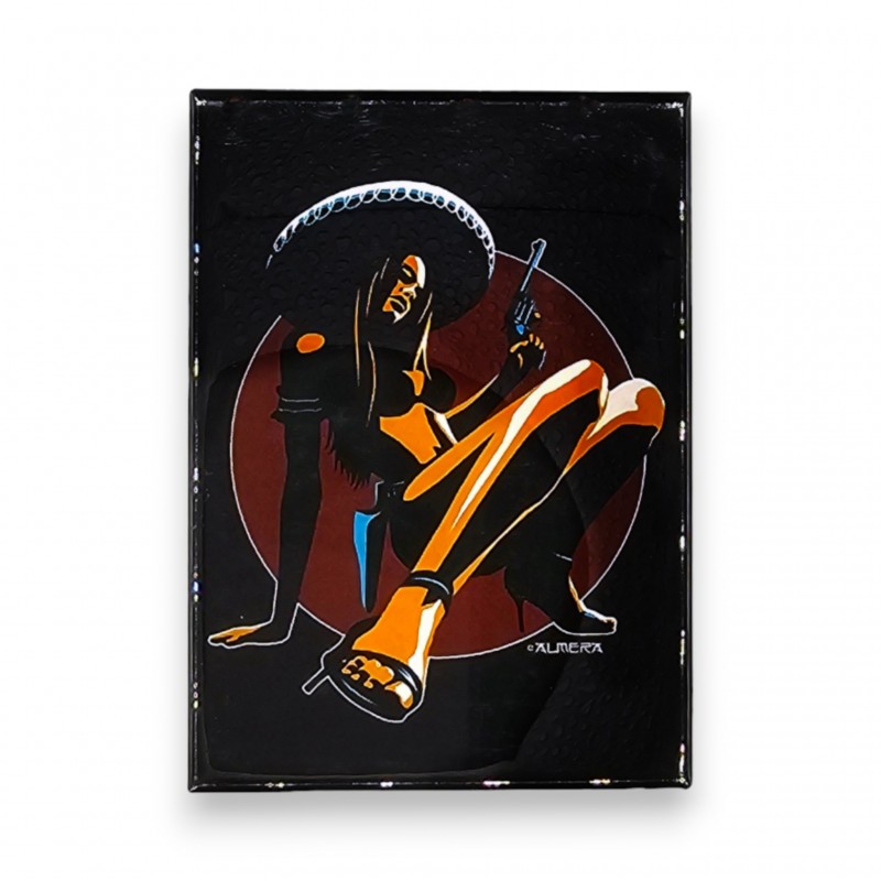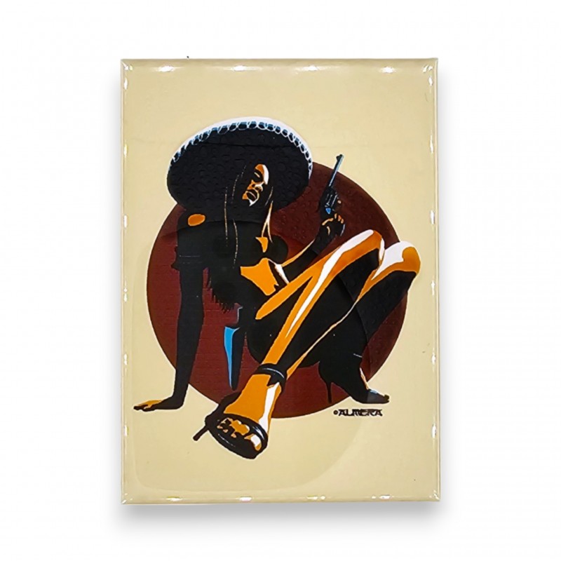 Superbe magnet d'un crâne décoré du Dia de los Muertos, bordeau avec des fleurs colorées.