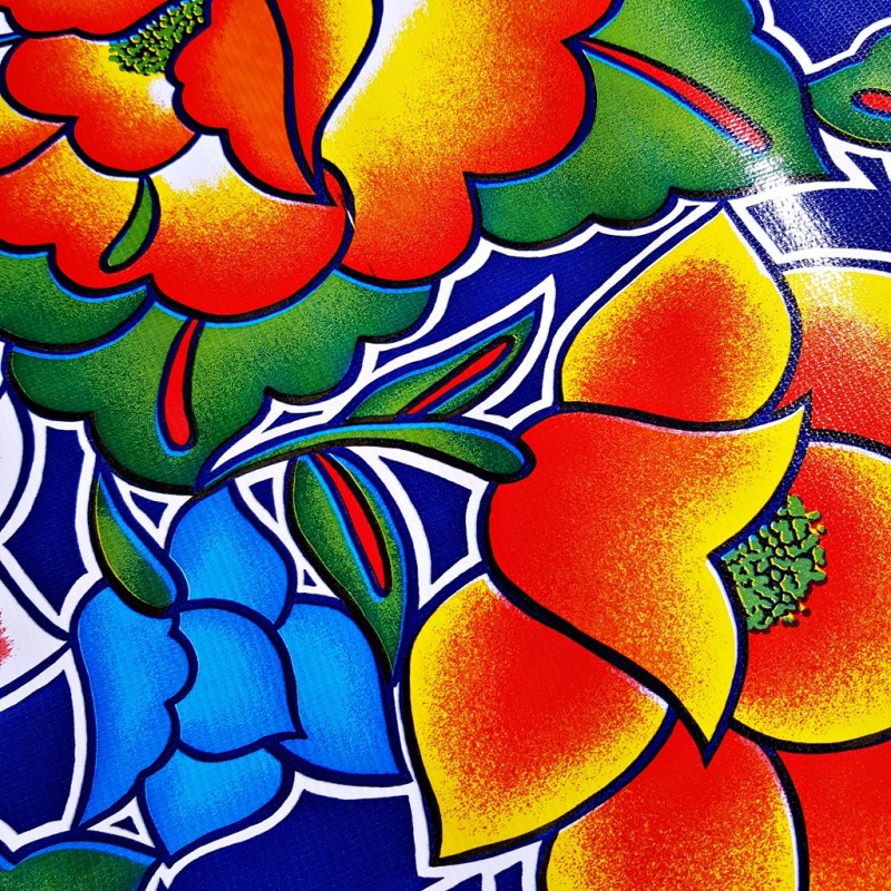In Mexiko wird es traditionell als Tischdecke in beliebten Restaurants, auf Marktständen und Gartentischen verwendet.