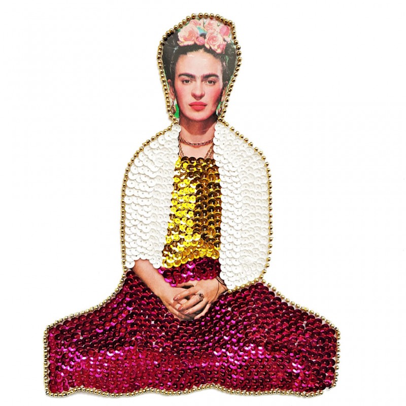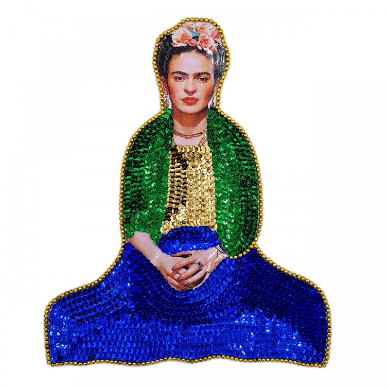Superbe appliqué avec une photo de Frida Kahlo brodé de sequins.