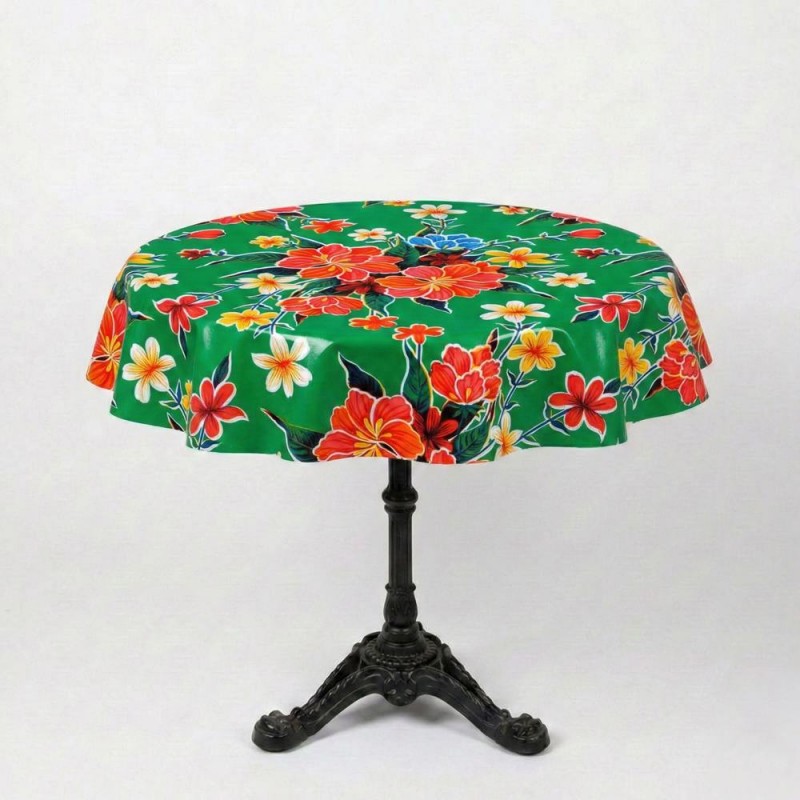Holen Sie sich die Insel-Sonne an Ihren Tisch mit dieser runden Wachstuchtischdecke mit Blumenmuster.