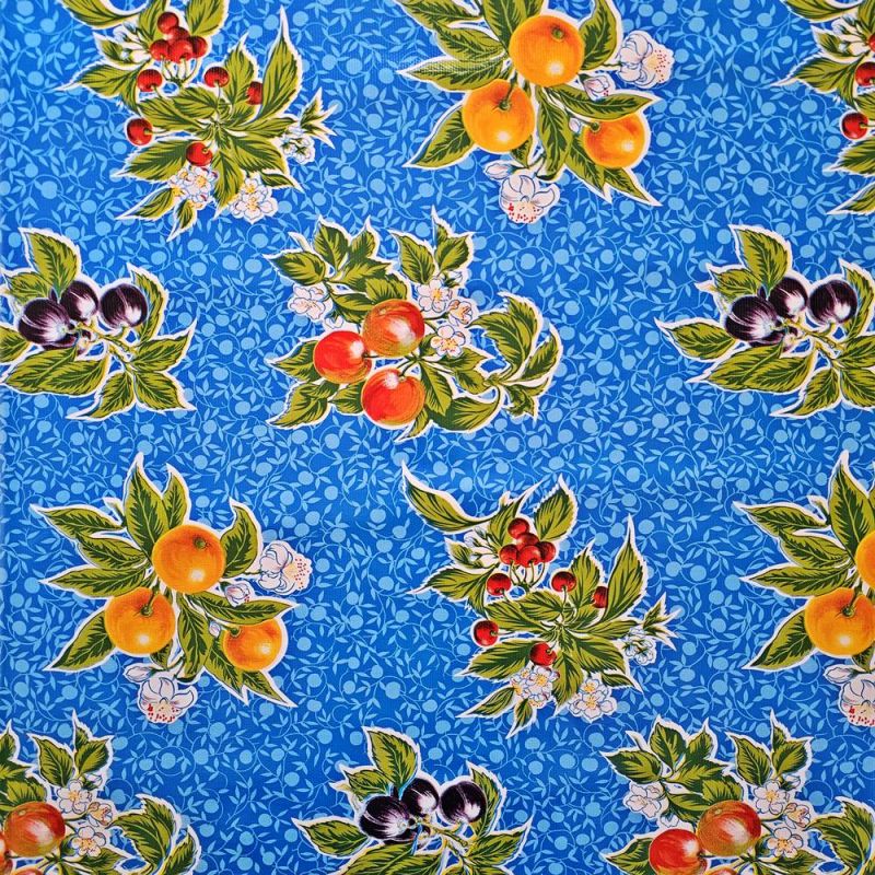 Dive into the sweetness of yesteryear's kitchens with the Blue Manzanitas Oilcloth.
