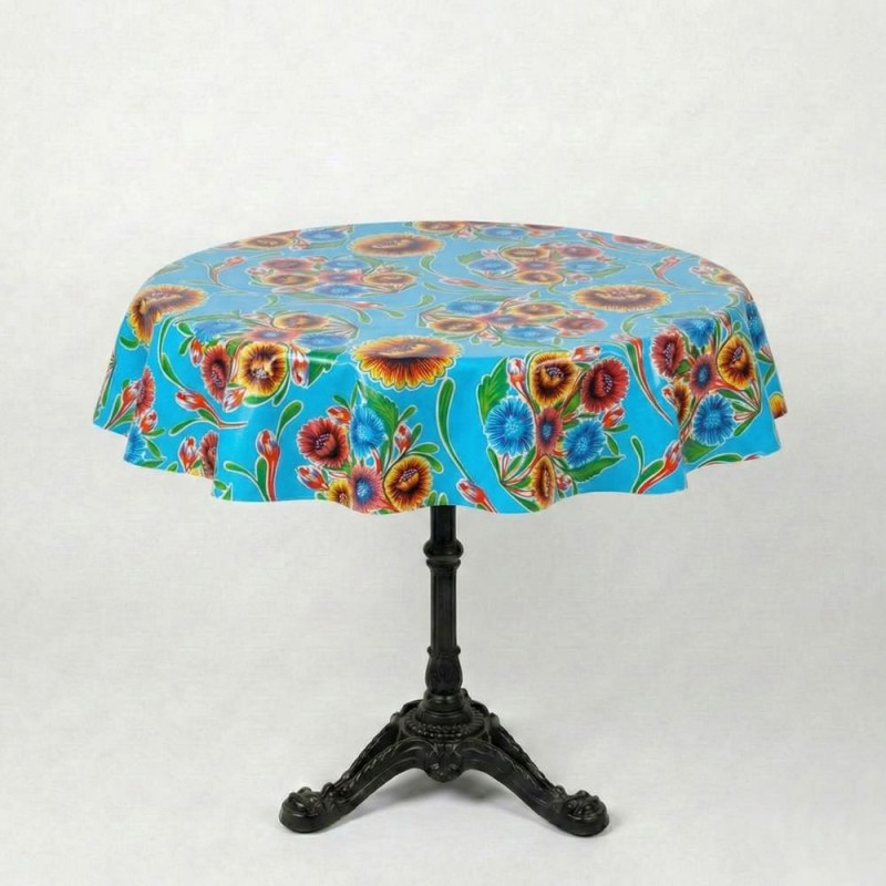Invite a good mood to your table with this brightly colored Mexican round oilcloth tablecloth!