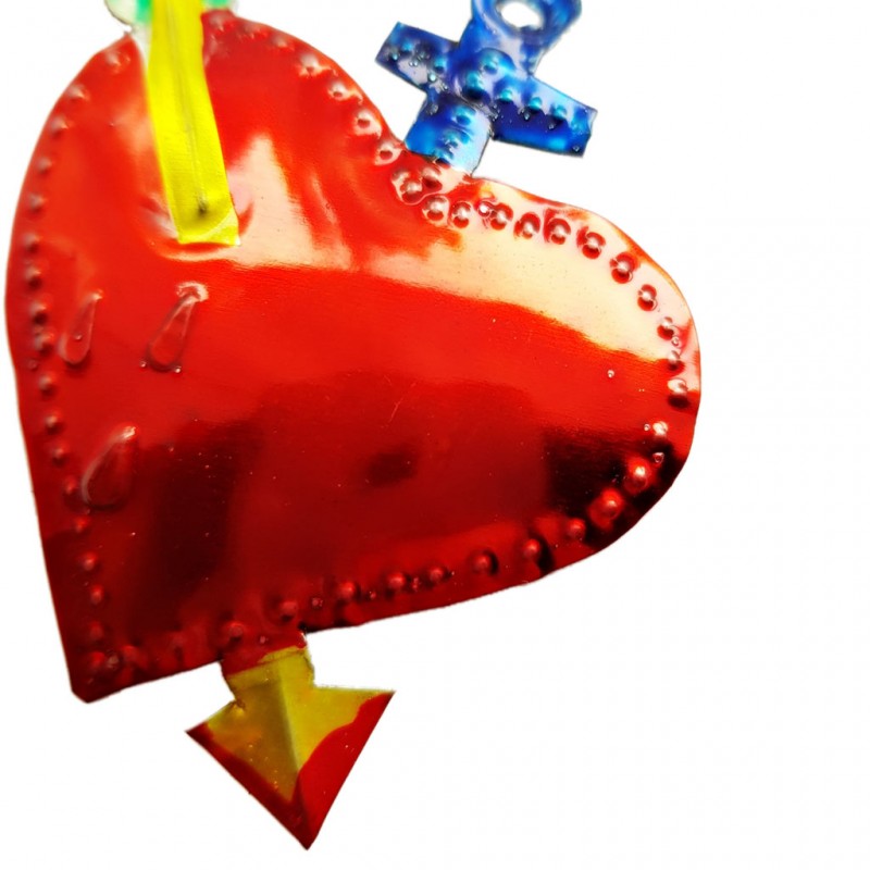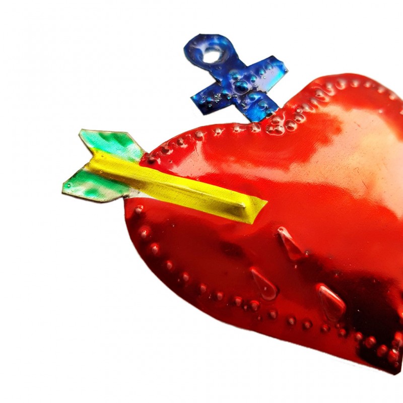 Small sacred heart pierced with an arrow and surmounted by a blue cross.