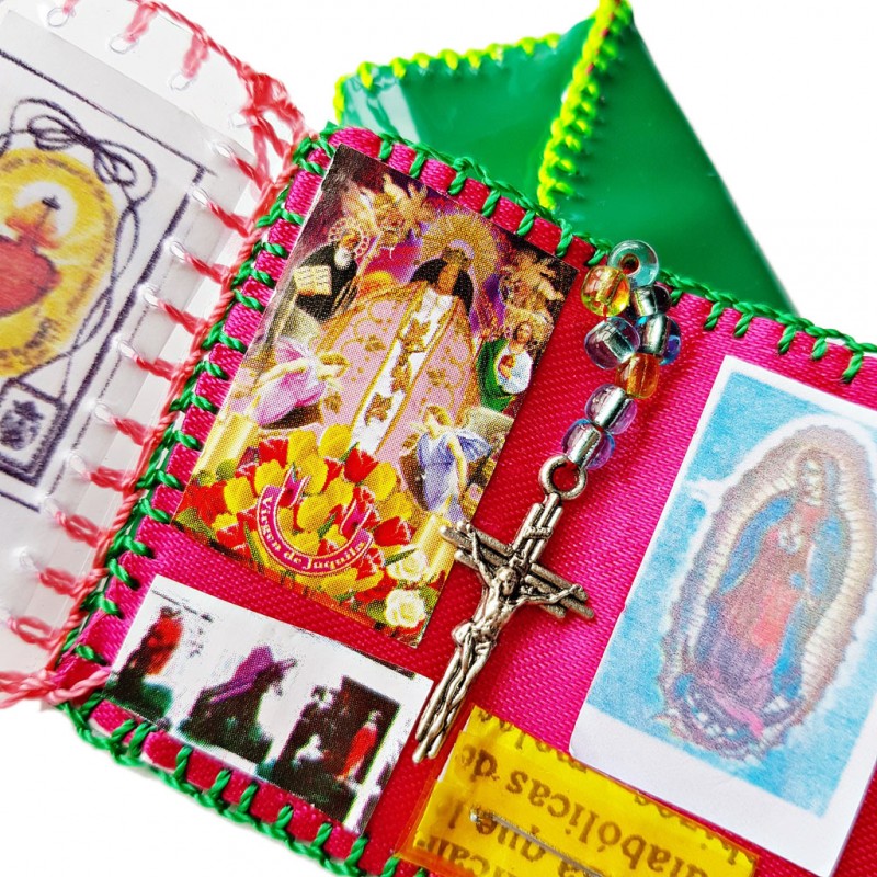 Un adorable altar en miniatura, que reúne a las figuras religiosas favoritas de los mexicanos. Un amuleto de la suerte para llevar contigo a todas partes!