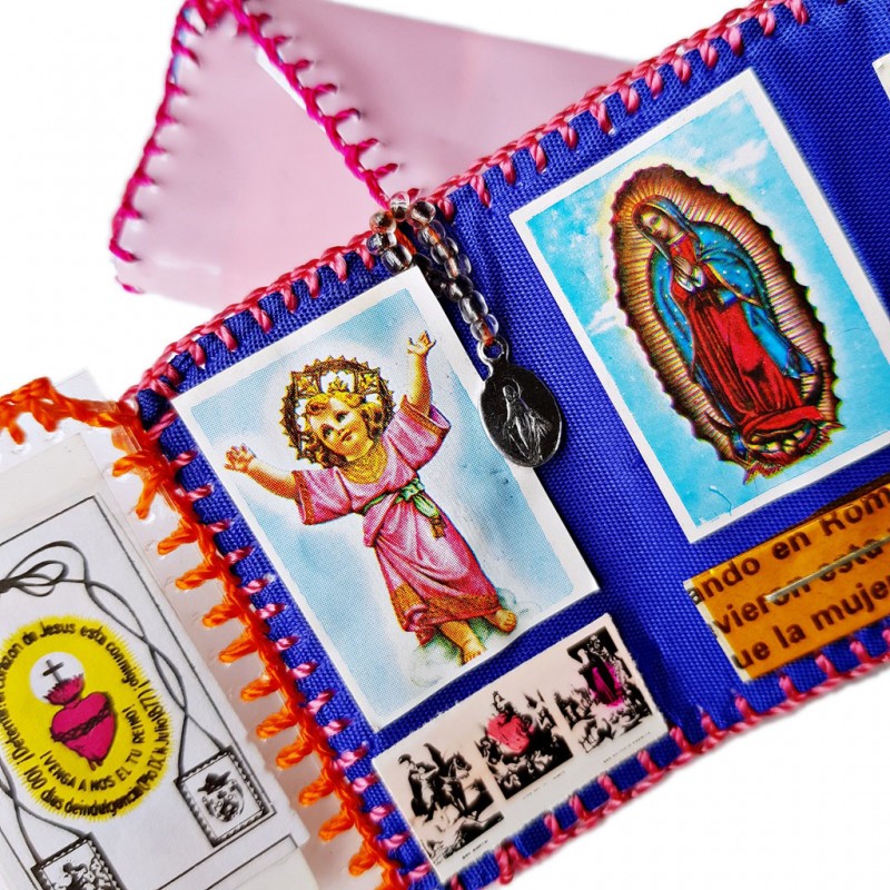 Un adorable altar en miniatura, que reúne a las figuras religiosas favoritas de los mexicanos. Un amuleto de la suerte para llevar contigo a todas partes!