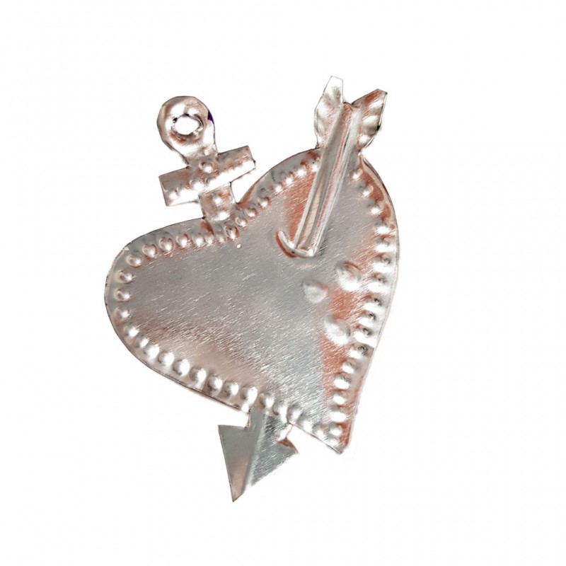 Petit coeur sacré transpercé d'une flèche et surmonté d'une croix bleue.