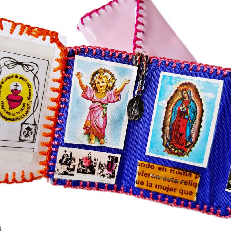 Un adorable autel miniature réunissant les figures religieuses préférées des mexicains. Un porte-bonheur à emporter partout avec vous!