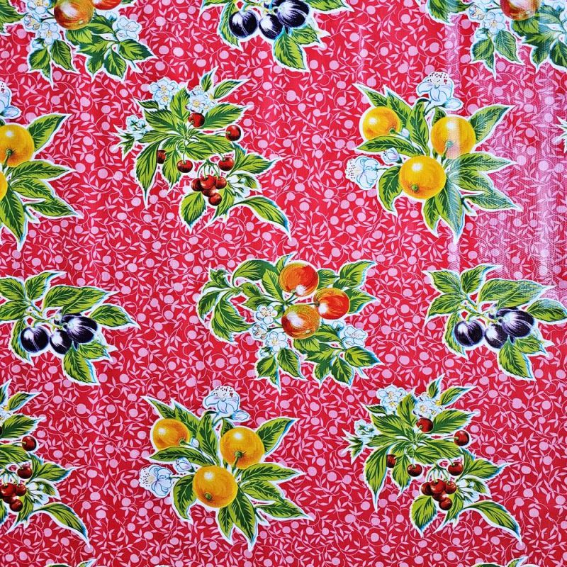 Laissez-vous séduire par la convivialité du motif Manzanitas! Avec son joyeux mélange de pommes, de cerises et de prunes sur un fond rouge vibrant, cette toile cirée est un véritable clin d'œil aux nappes de nos grands-mères.