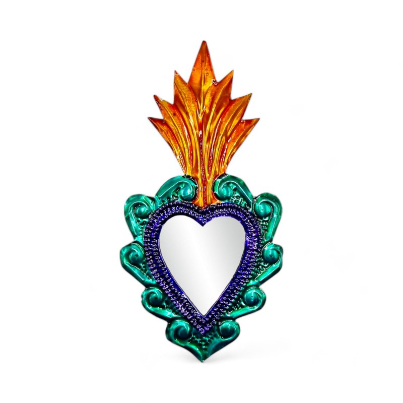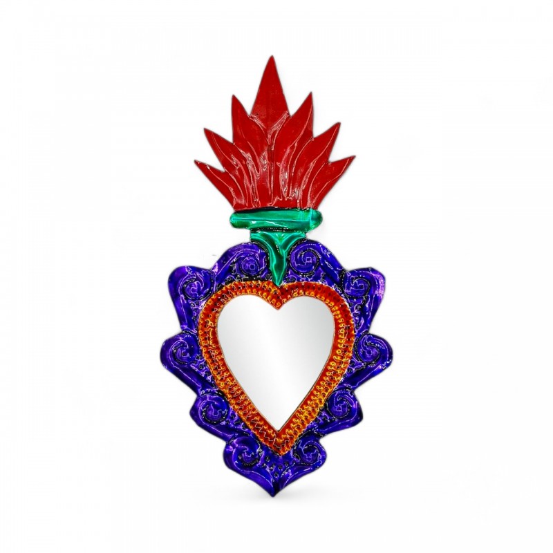 Superbe coeur sacré avec un miroir, peint dans des couleurs traditionnelles.