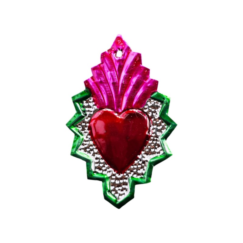 Als een typisch object van Mexicaans volksambacht, wordt het Heilige Hart (of ex-voto) oorspronkelijk in kerken aan een heilige geofferd als een verzoek of als dank voor een vervulde wens. Als een ware geluksbrenger belichaamt het alle vurige toewijding en traditie van Mexico.