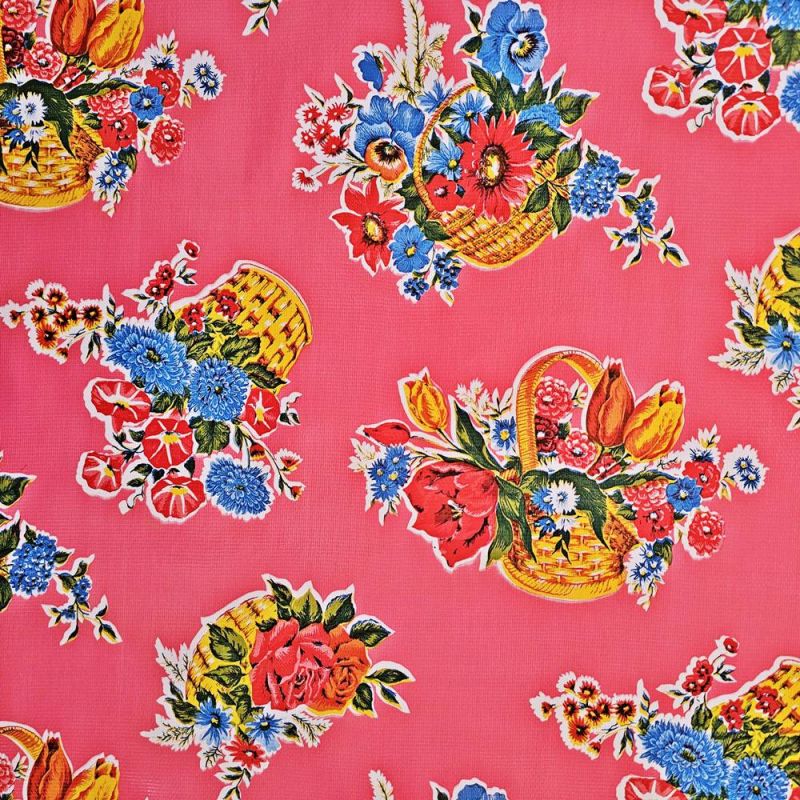 Het Canastas-patroon is een eerbetoon aan charmante geweven manden met de charme van weleer, boordevol kleurrijke bloemen. Dit royale motief valt prachtig op tegen een heldere en frisse roze achtergrond, wat herinnert aan de zoetheid van familielunches van vroeger.