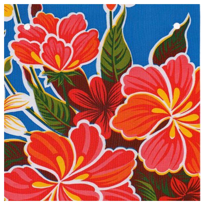 Haal de zomer op tafel met het tafelzeil Hibisco Blauw.