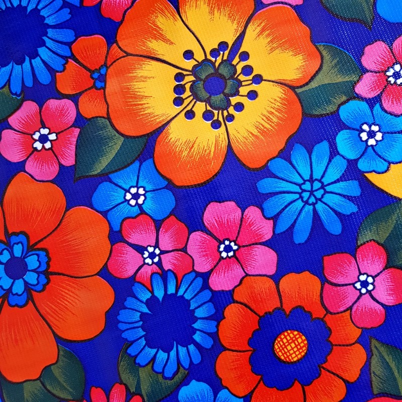 Laat u verleiden door de uitbundigheid van het Jamaica motief! Met zijn vele popbloemen in jaren 60-stijl, die bloeien op een donkerblauwe achtergrond, geeft dit tafelzeil uw projecten een flower power, levendige en resoluut vrolijke touch. Een ware kleurexplosie om uw interieur of tuin op te vrolijken.